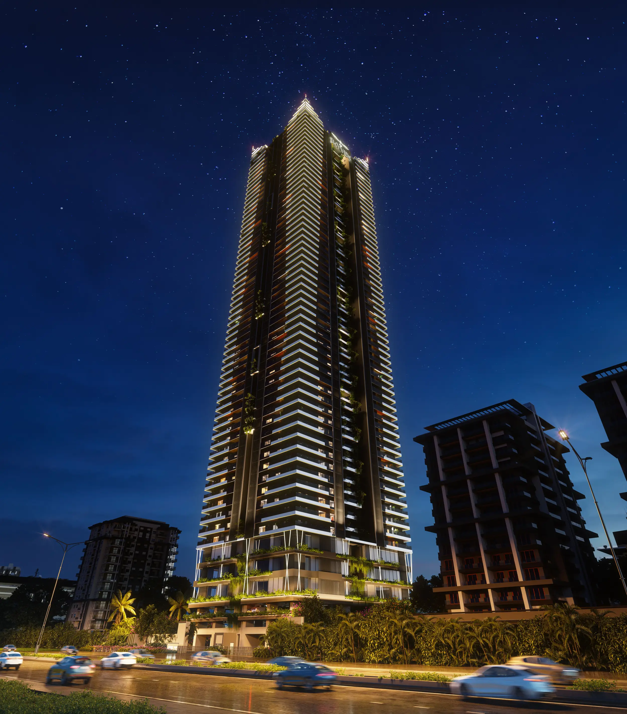 Skyven, a striking 63-storey residential masterpiece, presents a collection of 210 luxury apartments in Kokapet, situated in Hyderabad's most coveted address. Perched high above the city, each apartment offers a panoramic view, redefining the meaning of elevated living. To preserve the integrity of these views, residential floors begin from the 7th level, allowing all residents to experience unobstructed views. This premium gated community in Kokapet is designed for those who appreciate refined living.
